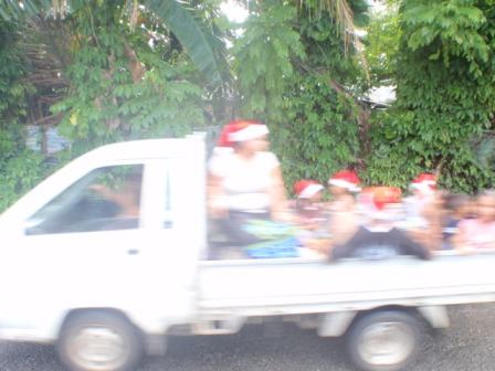 イヴイヴの日は、サンタさんがトラックの荷台から、お菓子をバラまいていて、街は一時騒然。