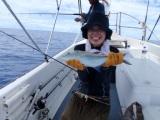 ビギナーズラックでこんなおっきいのも釣れたし。カスミアジっていう魚だって。ほかにもちっこい熱帯魚から青魚からいろいろ釣れました。