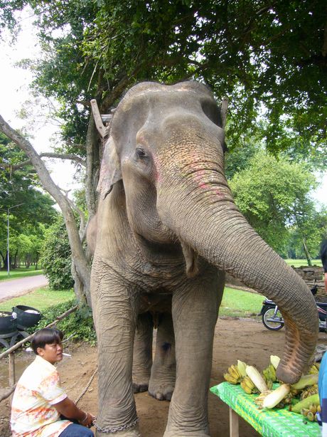 ワットチャーンロームの前には象さんが待っていて、1人100Bで乗っけてくれます。