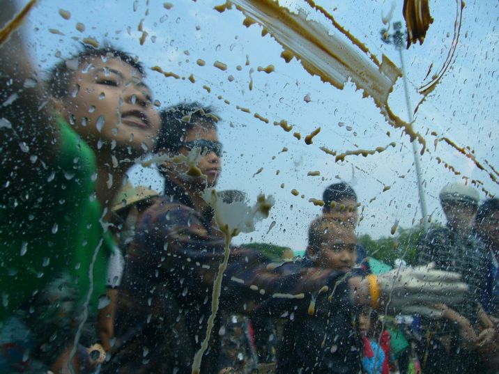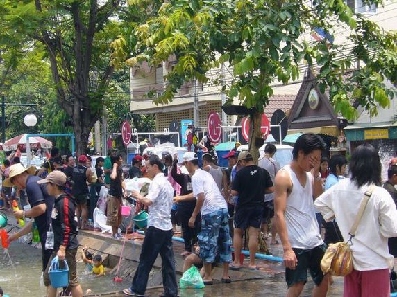 タイ人の若い子たちは、トラックみたいな車の荷台に何人もで乗り込み、大きなドラム缶からバケツで無差別に水をまく。