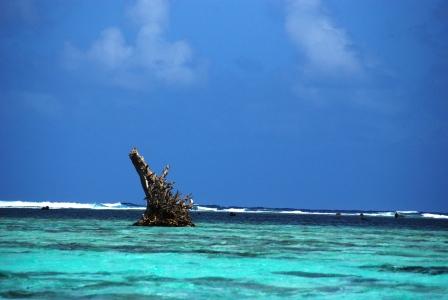 ふしぎな流木があるサンゴガーデン。
