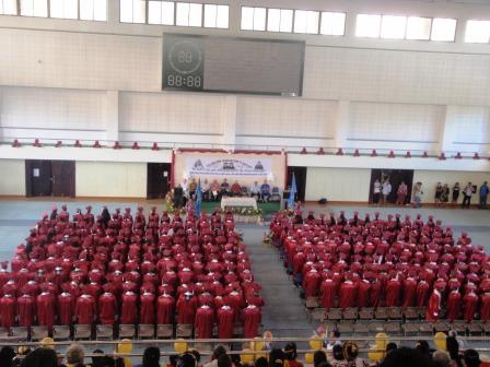 内容はオーソドックスに表彰とか、来賓や先生方のスピーチ、